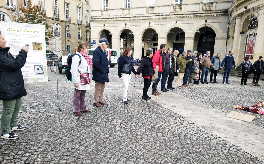 Tel est le début du Collectif « Dignité – Cimetière » en 1989. Depuis cet événement, ce Collectif s’est développé jusqu’à ce jour et a fait des émules dans le département et toute la Bretagne, France. Il œuvre pour humaniser et rendre leur dignité aux personnes décédées dans la rue.