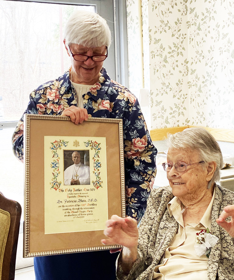 On March 15, 2026, Sisters, Associates, Consecrated Seculars, friends and family gathered at St Joseph Living Center in honor of her 100 years of dedication. Included in the festivities was the presentation of a Papal Blessing. Those present also extended their own blessing and well wishes. It was a joyous celebration.