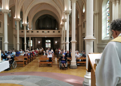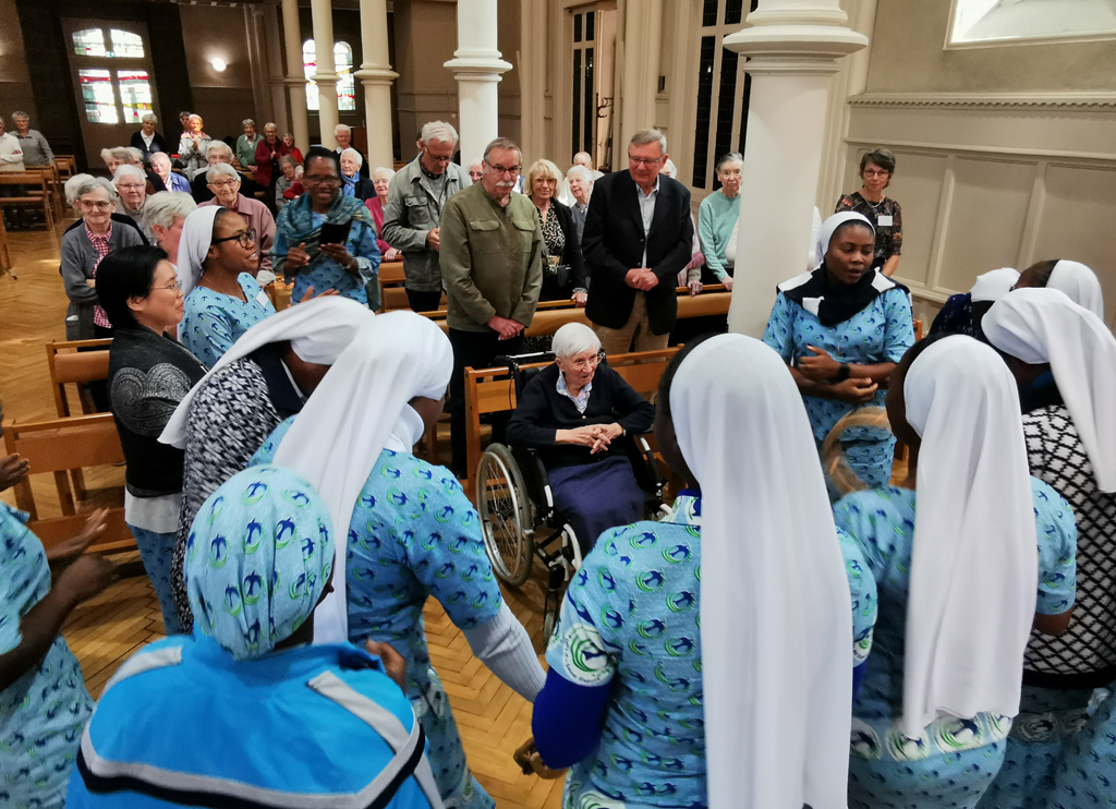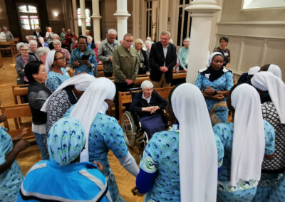Gérard Nicole ended his homily by saying: “Sister Denise, it’s obvious: God loved you and you loved him”. At the end of the mass, the African sisters, who had been visiting the Mother House in August, surrounded Sister Denise and shared their joy with her by dancing and singing. It was a wonderful gift!