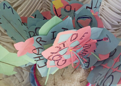 A las 16.30, estábamos todos en la capilla, incluidas las hermanas de las comunidades de Bagane, Phariyago y el Foyer ‘Marie-Balavenne’. Tras unos minutos de espera, la celebración comenzó con un hermoso fondo musical y continuó con un canto de bienvenida de las postulantes de segundo año: Laurence, Matilda, Ijeoma, Louisa, Mary-Patience, Emmanuela, Mary-Faith. A continuación, más canciones de bienvenida para los postulantes a punto de entrar en su primer año, y se leyeron extractos bíblicos relacionados con el símbolo elegido: la sal; se leyó el itinerario vocacional de cada una de nosotras cuatro y se entregaron piedras con nuestros nombres y una cruz. A partir de ese momento Léonie SOME, Pélagie ZONGO, Judith OUEDRAOGO y yo misma, Eudoxie OUEDRAOGO, nos convertimos oficialmente en postulantes en la Congregación de las Hijas del Espíritu Santo. ¡Inmensa alegría para todas las hermanas presentes! Terminamos la celebración con la oración universal, el Magnificat y un canto de cumpleaños para la Hermana Jessica, que celebraba ese día.