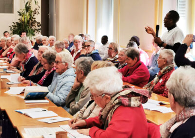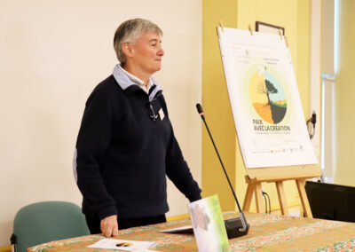 – La comunidad de Trégueux se ha sumado al proyecto «Iglesia verde» de la comunidad pastoral Notre Dame de la Baie, cerca de St Brieuc. Jeanne comparte la reflexión del año sobre la gestión del agua. A continuación, expone el tema de la Cuaresma de 2025: «Paz con la creación»: la lectura en taller de Laudato Si’ llevó a los participantes a maravillarse y a cuestionarse su actitud hacia la tierra en proceso de degradación, la relación con los demás el cultivo de la paz interior.