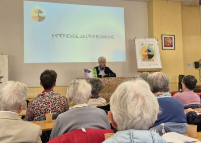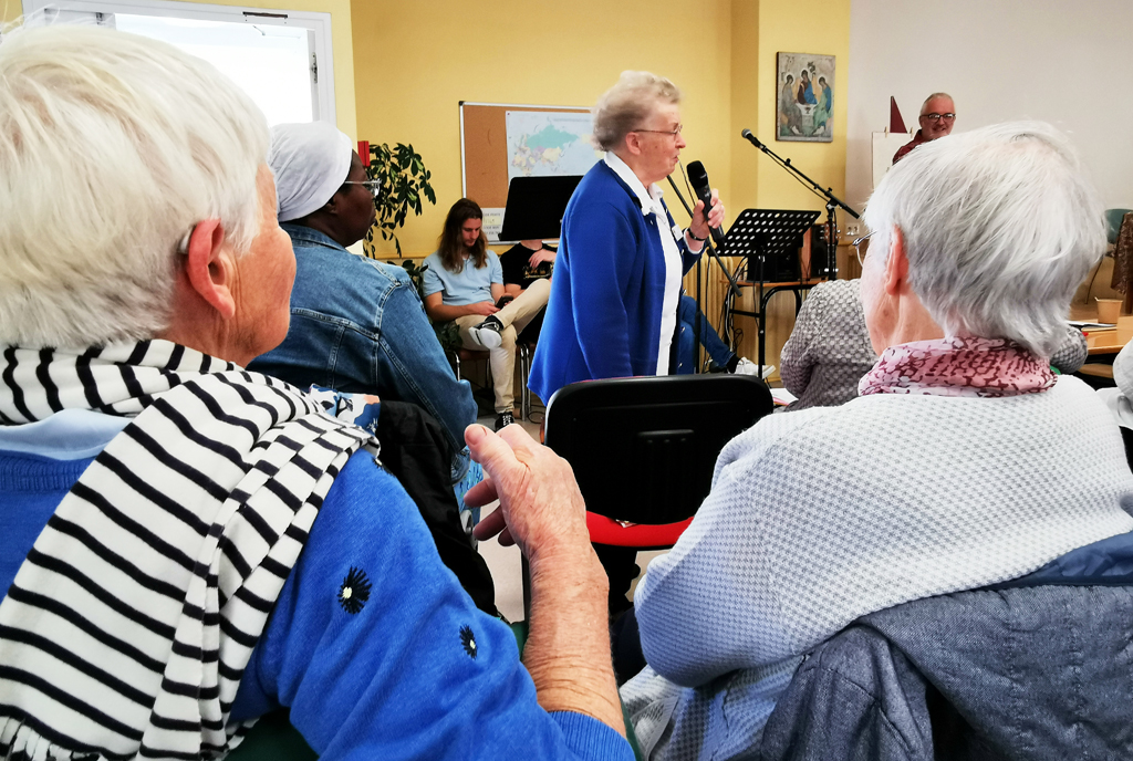 La reunión comienza con las presentaciones, realizadas con talento por Patrick Salaün, sacerdote de la Misión de Francia, de los responsables de la «Familia espiritual» (Hermanas Hijas del Espíritu Santo, Laicos consagrados y Asociados), de los «Amigos de la Isla Blanca», de la directora de la casa y de las coordinadoras laicas de las comunidades. Sí, «¡Todo está relacionado!».