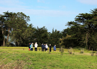 – A continuación, Anne-Marie, HES, habla de la experiencia de la Isla Blanca: una historia que nace del deseo de mantener la propiedad, deseo al que se suman unos «amigos». Con esta pregunta: «¿Y por qué no un viñedo en la Isla Blanca?». Los análisis del terreno y su exposición lo favorecerían… Así nace en 2023 la asociación GAEW —siglas bretonas que significan «el vino de la Isla Blanca»—, que planta y mantiene 750 cepas de vid, cuya primera vendimia tuvo lugar el 11 de septiembre de 2025. Esta acción genera «fuertes lazos de amistad entre los miembros de la asociación y toda la comunidad»: a pesar de las diferencias de convicciones, existe «el mismo respeto por la tierra y la benevolencia entre las personas». Sí, en la Isla Blanca, «¡todo está relacionado!».