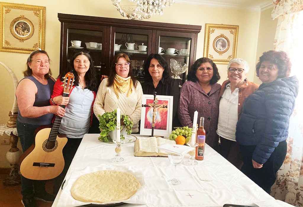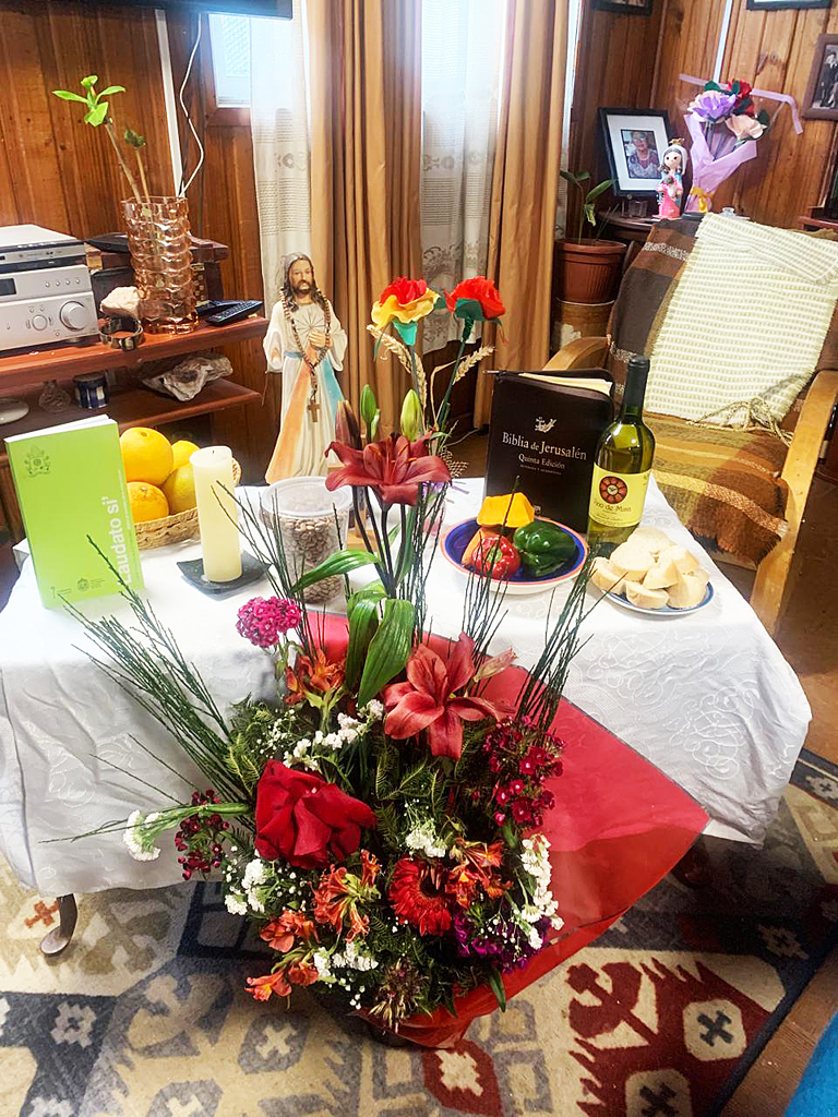 Este evento tuvo lugar a través de la plataforma virtual Zoom con más de 40 personas ubicadas en sus casas o locales, ya sea individualmente o en grupos. Se construyeron pequeños altares en cada lugar con imágenes, flores, pan, uvas, telas, velas y otros objetos significativos.