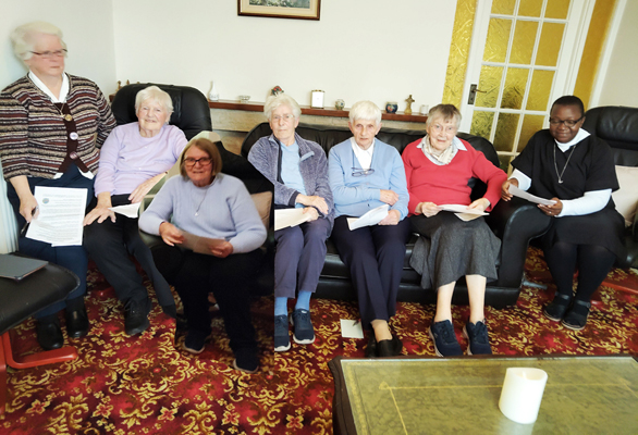 Las tres hermanas de la comunidad Lucan se unieron a nuestras cuatro hermanas en Drumcondra cuando la tormenta Amy nos saludó con un gesto de despedida, dejándonos una magnífica alfombra de follaje otoñal, que nos invita a alabar a Dios (Fig. 20). Compartimos una comida festiva, parte de la cual provino del jardín comunitario. Intercambiamos ideas: Anthonia Ayeni (nuestra hermana nigeriana) nos informó sobre el desarrollo de nuestra misión en Nigeria y cómo las hermanas celebraban la Laudato SI’. Era obvio que todo estaba relacionado. Somos parte de la historia de la creación de Dios. Un tiempo más largo ha sido dedicado a la oración y a la reflexión sobre citas de Laudato Si’ y del salmo 148, donde el coro de las criaturas de Dios canta sus alabanzas; juntos hemos prestado gran atención al proyecto de granja lanzado en una de nuestras parroquias. Comenzamos nuestra oración cantando dos versos de «Todas las criaturas de nuestro Dios y Rey» y terminamos con los dos últimos versos del mismo himno. Todos nos interpelan claramente: el Grito de la Tierra y el Grito de los Pobres. Esta celebración nos ha hecho tomar conciencia de la responsabilidad individual de cada una de nosotras de aceptar los desafíos que nos esperan para cuidar mejor nuestra Casa común, en beneficio de todos y de las generaciones futuras. Permanezcamos peregrinos de la esperanza, manteniendo la llama de la esperanza. Se han dirigido palabras de gratitud a San Francisco de Asís por su vida inspiradora y al difunto Papa Francisco por el regalo de la encíclica Laudato Si’. «Todo el universo, toda la creación da testimonio del infinito afecto de Dios por nosotros, todo es una caricia de Dios» (Laudato si’ 84).