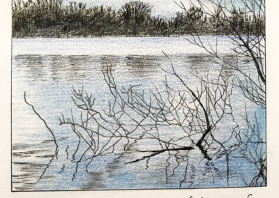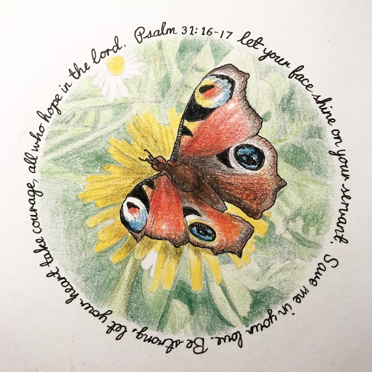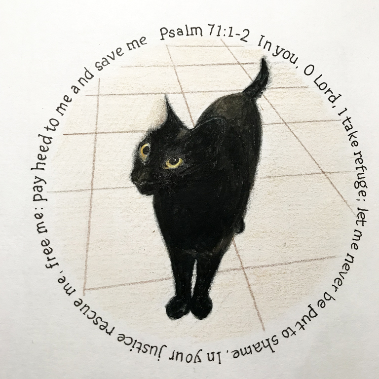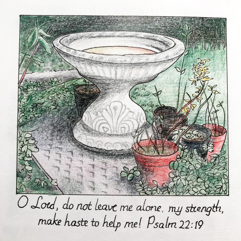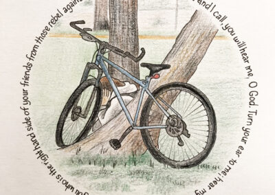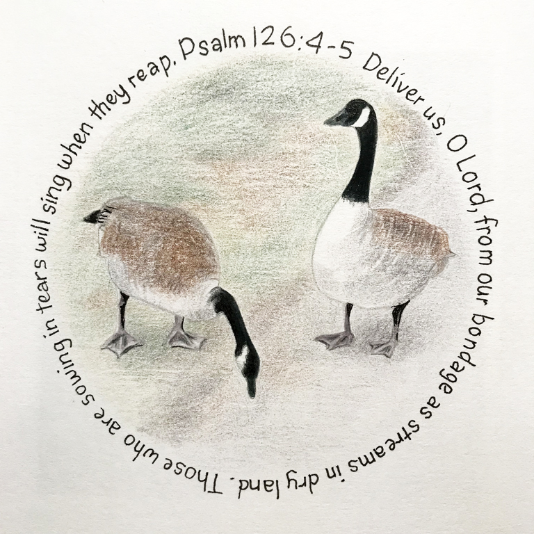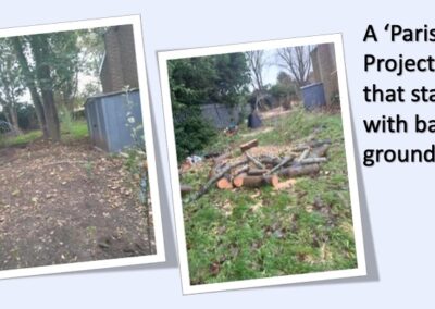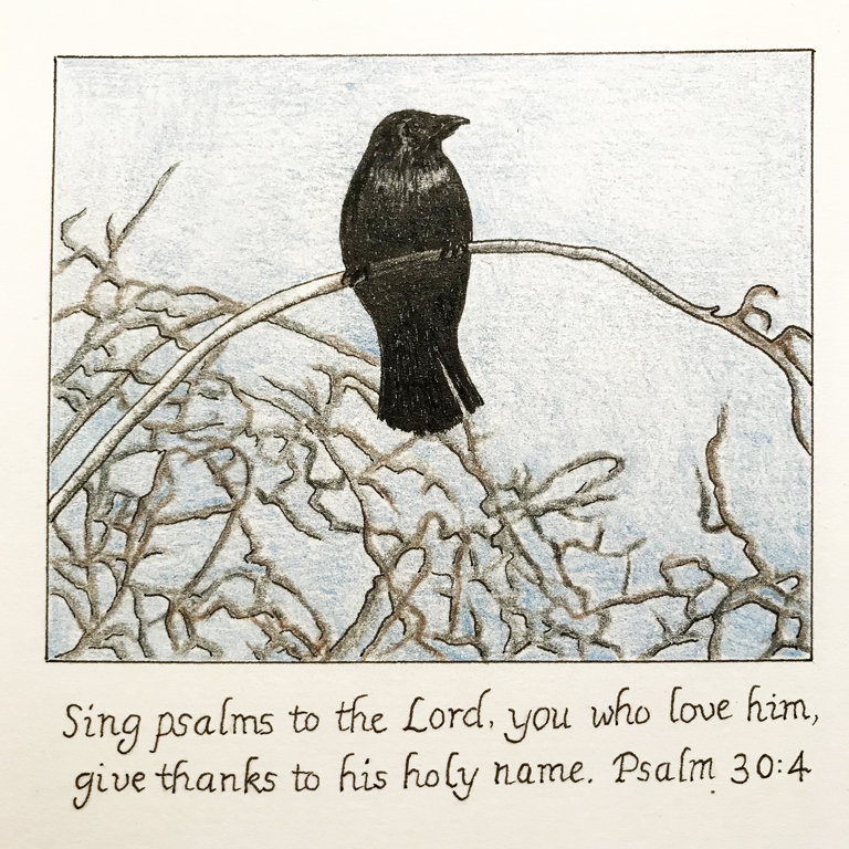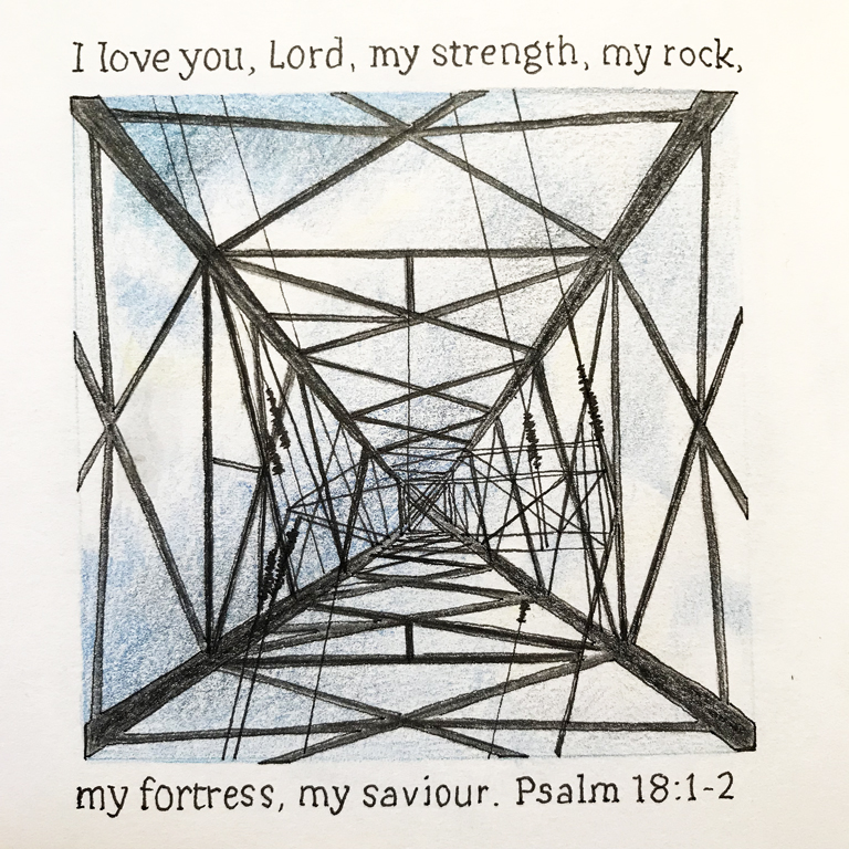 Luego contemplamos, maravillados, una presentación caleidoscópica de 40 magníficas pinturas realizadas por Judy Buchanan, una talentosa asociada de Bedford, que caminaba diariamente en su barrio para CAFOD durante la Cuaresma y el tiempo pascual en 2023. Pintó lo que le llamó la atención durante sus paseos, y cada cuadro fue acompañado por un verso de salmo que invitaba a la meditación. Se presentan las fotos de una selección de sus pinturas, acompañadas de los versos correspondientes (Fig. 7-17). Cada una ofrece una ventana a la contemplación de las maravillas de la creación divina, ya sea la fauna, la flora, los pájaros, o un elemento arquitectónico o una escena callejera que ha llamado su atención!