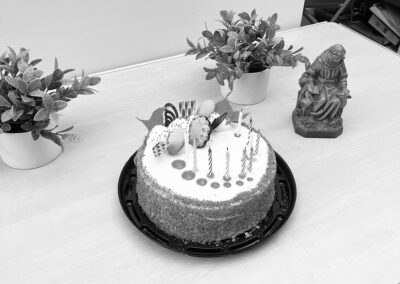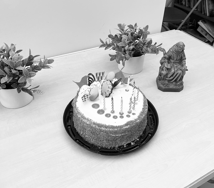 Después de una interpretación de los dos últimos versos de nuestro himno, el día concluyó con una merienda en la que un magnífico pastel del 10o aniversario de Laudato Si’ fue cortado y probado por todos (Fig. 18, 19).