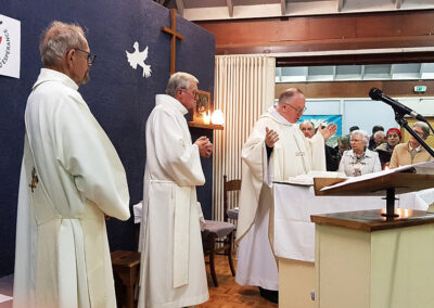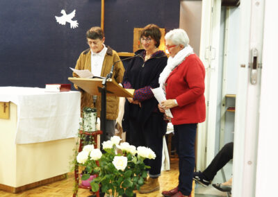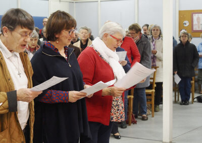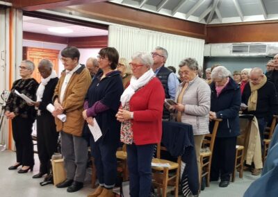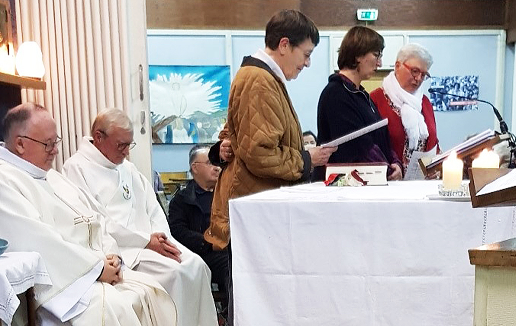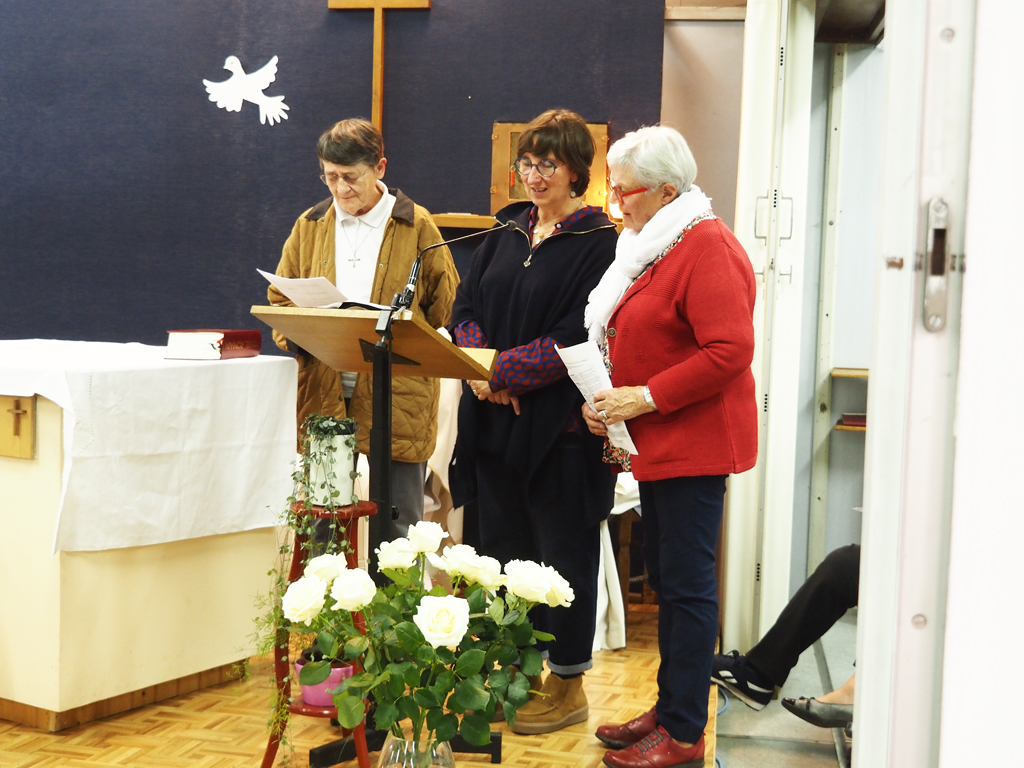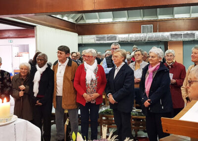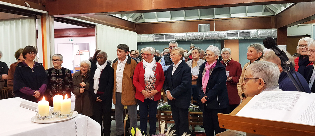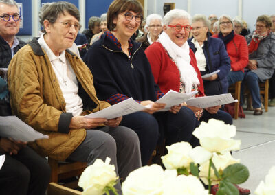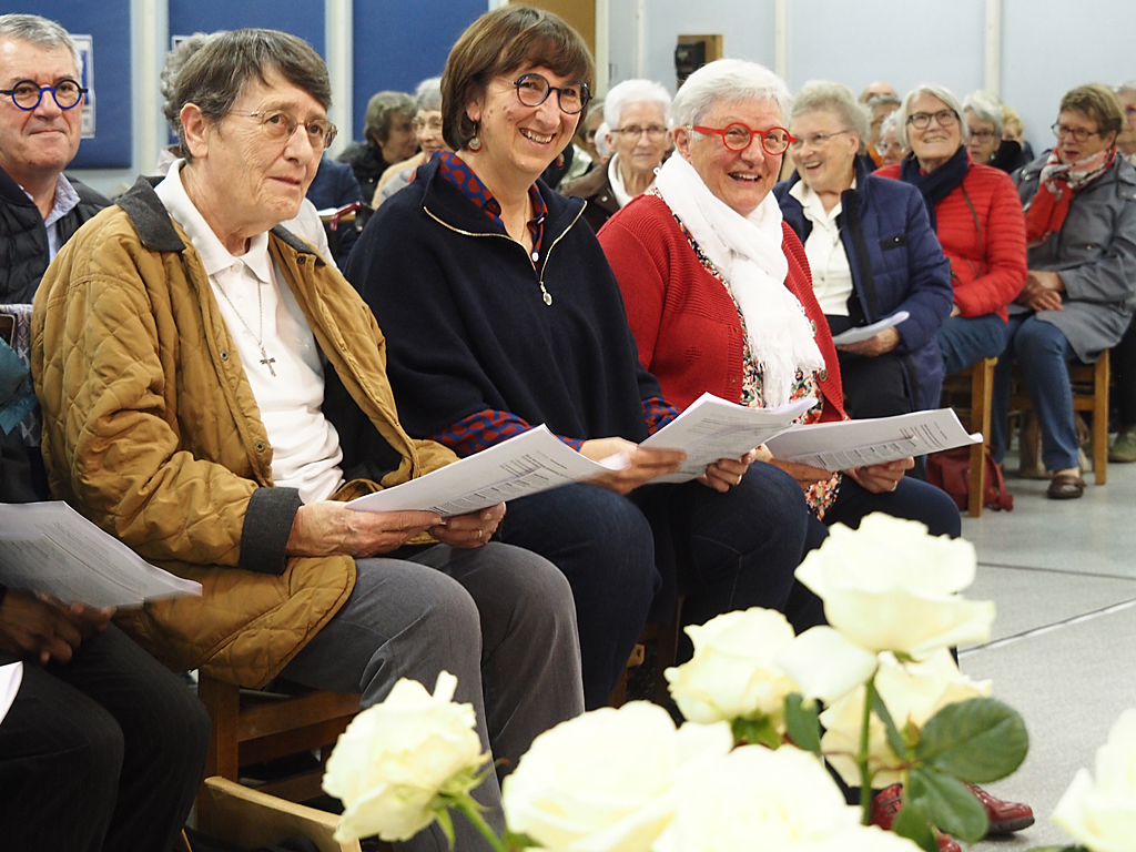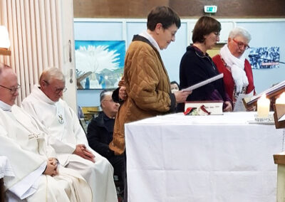 La célébration a eu lieu au cours de la messe dominicale, à la chapelle St Michel, dans un quartier populaire où une communauté de Filles du Saint-Esprit est présente depuis 2001. Ce soir-là, pour toutes deux connues et actives à Flers et dans le diocèse, l’assemblée renvoyait l’image d’une communauté chantante, vibrante, en communion d’amitié et de foi avec l’évènement qui se vivait.