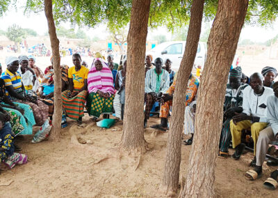 Le lendemain, 14 décembre, nous sommes allés à GAMPELA, dans les périphéries de Ouagadougou, manifester notre proximité auprès des déplacés internes. Nous avons participé à la messe dominicale avec eux et les avons ensuite rencontrés pour un échange dans lequel ils ont reconnu l’effort d’aide à leur égard mais où ils ont aussi exprimé leurs difficultés, leur besoin d‘une écoute. De notre part, quelques paroles les ont encouragés à l’Espérance. Pour finir nous avons prié avec eux et leur avons offert quelques provisions et des vêtements. Nous pouvions lire sur leur visage l’expression de gratitude et le sentiment de considération.