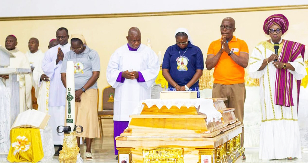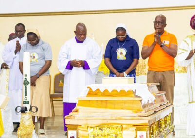 Il a été conduit dans son repos, le 28 novembre 2025, lors d’une la cérémonie funéraire en l’église Saint-Bernadine d’Owode-Oyo, cérémonie suivie par un bon nombre d’évêques à travers la nation, de prêtres, de religieux dont nous-mêmes les Filles du Saint-Esprit… et des fidèles laïcs.