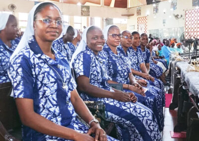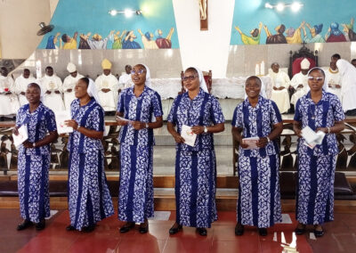Les six sœurs qui ont prononcé leurs vœux sont Sœur Ann Oloruntoba, Sœur Benedicta Esumai, Sœur Christiana Oguntoyinbo, Sœur Felicia Ogungbenle, Sœur Patricia Akinremi et Sœur Peace Ameh, tandis que les jubilaires d’argent étaient Sœur Elizabeth Babalola et Sœur Esther Amowe.