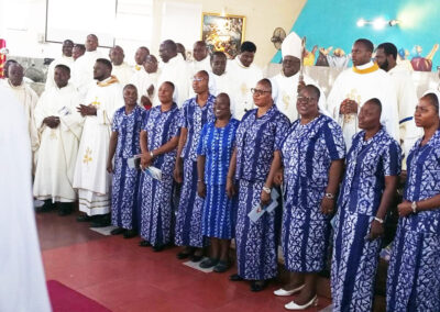 La messe, qui a commencé à 10 heures, a été célébrée par l’archevêque de l’archidiocèse catholique d’Ibadan, Son Excellence Mgr Gabriel Abegunrin. Étaient également présents Mgr Emmanuel Badejo, évêque du diocèse catholique d’Oyo, et Mgr Jude Arogundade, évêque du diocèse catholique d’Ondo. Un grand nombre de prêtres et de religieux, tant de la province ecclésiastique d’Ibadan que d’autres diocèses, ont également assisté à cette joyeuse célébration.