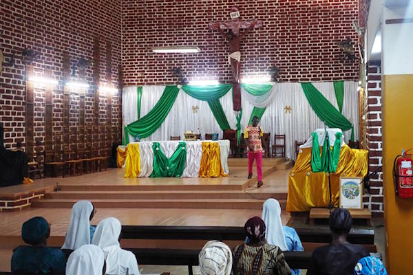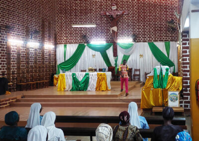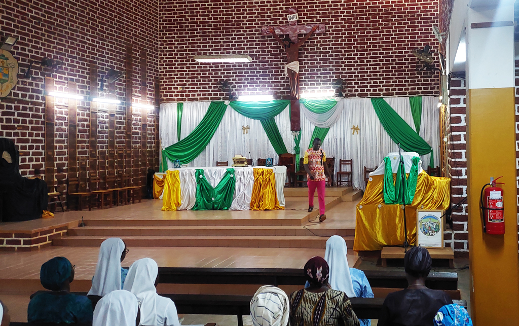 A la chapelle, par une prière participative, la vice-provinciale, sœur Silvie ROAMBA- et ses conseillères, nous ont introduites à cette rencontre. Puis, en salle, dans son mot d’ouverture, Silvie a souhaité la bienvenue à sœur Pascaline SOMDA revenue de trois années de mission au Cameroun, aux deux nouvelles sœurs Edith ZEMDE et Nina SOME et à sœur Judith MBOUNGHOUL, conseillère générale.
