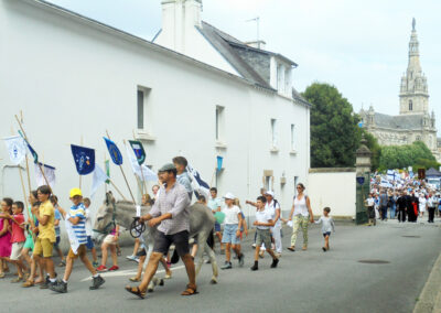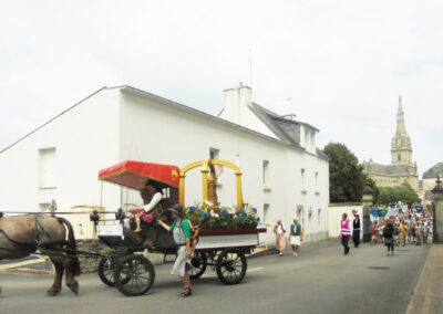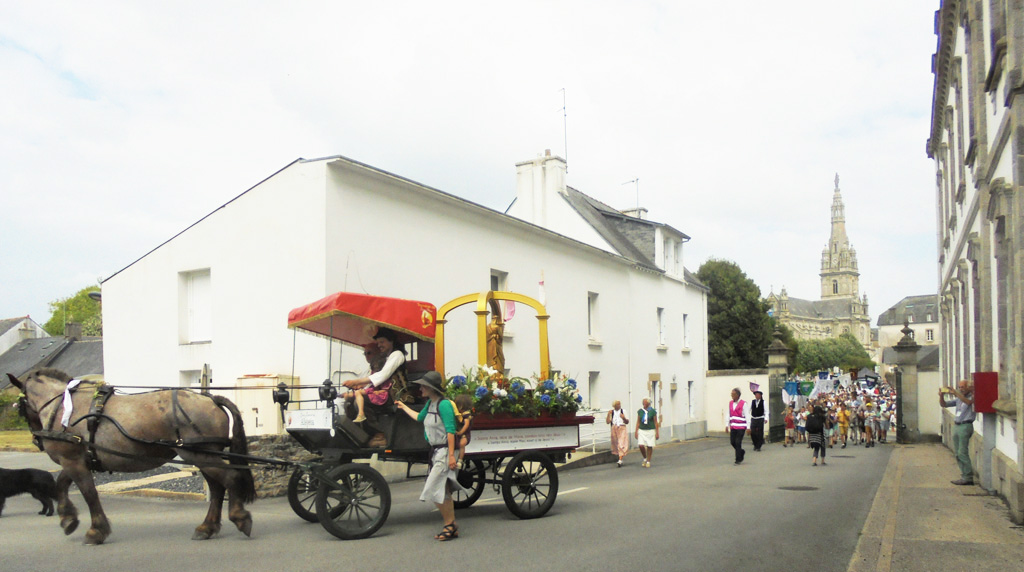 Ce Pardon a été précédé d’une Troménie* de Ste Anne -procession de sa statue posée sur une calèche tirée par un cheval de trait breton- dans les paroisses du département du Morbihan, effectuant, du 7 mars au 25 juillet 2025, un parcours de plus de 1800 kms !  Cette Troménie a permis le déploiement de générosités, d’expression de témoignages émouvants de foi et d’approfondissement de liens communautaires !