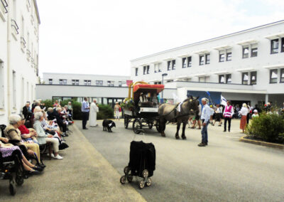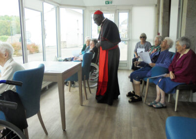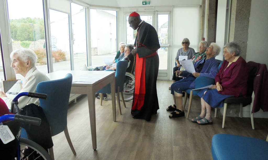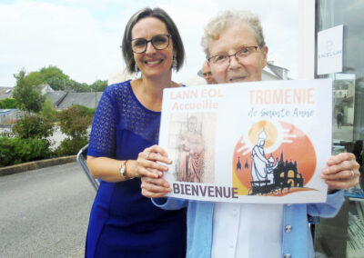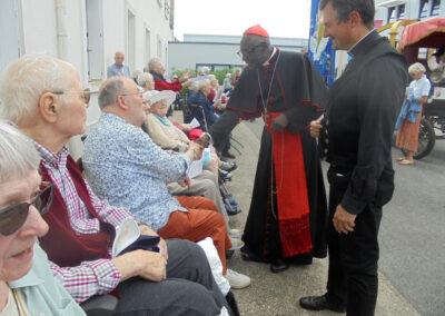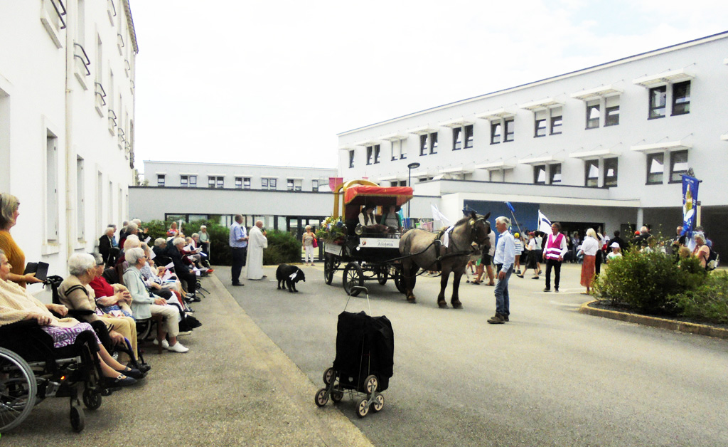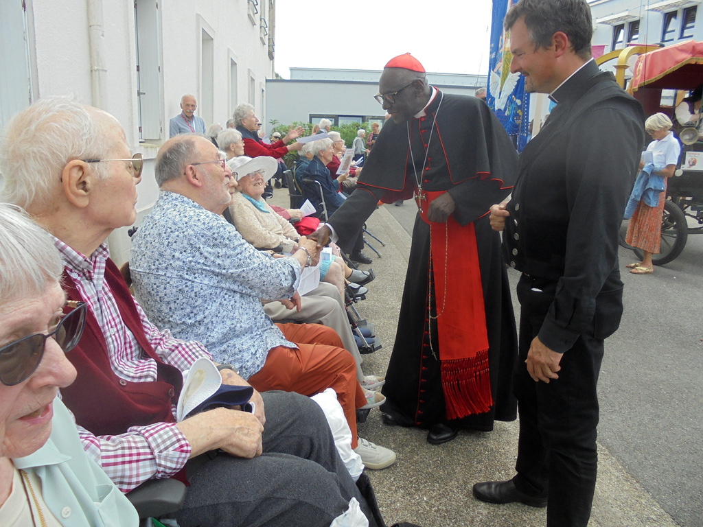 A l’issue de cette troménie, le 25 juillet après-midi, avant d’entrer dans sa Basilique, Sainte Anne s’est arrêtée dans la cour de notre maison, à Ker-Anna- Lan Eol, acclamée d’une ardente salutation, accompagnée du cardinal Sarah qui a serré la main de tous les résidents qui pouvaient être présents !